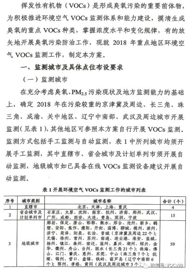 近日,環保部印發了《2018年重點地區環境空氣揮發性有機物監測方案》。方案對于VOCs監測的城市、監測項目、時間頻次及操作規程等做了詳細規定。