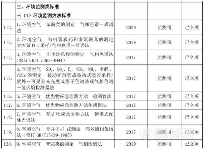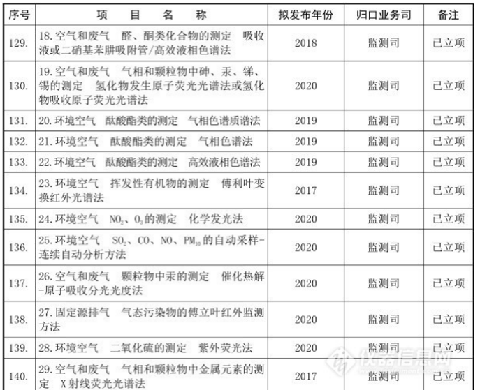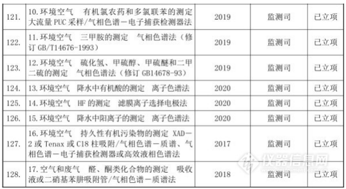 十三五”國家環境保護標準制修訂項目清單(儀器部分)